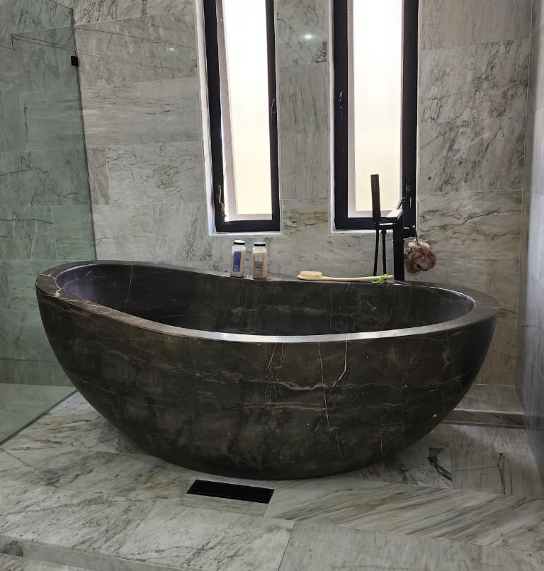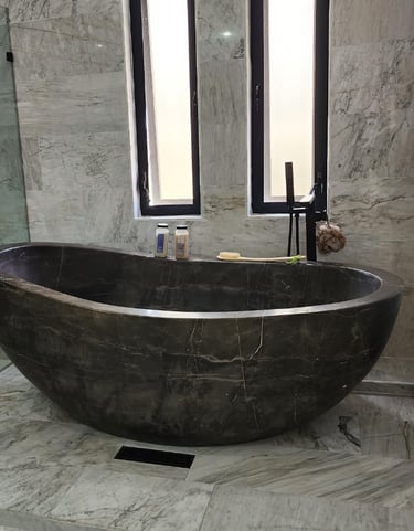 Discover unique pieces, some carved from a single solid block, creating striking bathtubs and sinks with flawless finishes, refined textures, and timeless elegance.